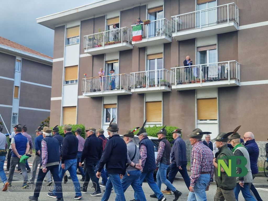 Il momento più emozionante è stato l’arrivo del corteo in piazza, accolto da lunghi applausi. A seguire, il capo gruppo della sezione Alpini di Chiavazza, Piero Coda, ha tenuto un breve discorso: