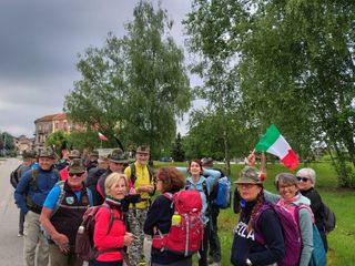 Un gruppo di alpini di Omegna e dintorni, dopo aver fatto tappa a Brusnengo, ora sono in marcia alla volta di Biella per l'Adunata