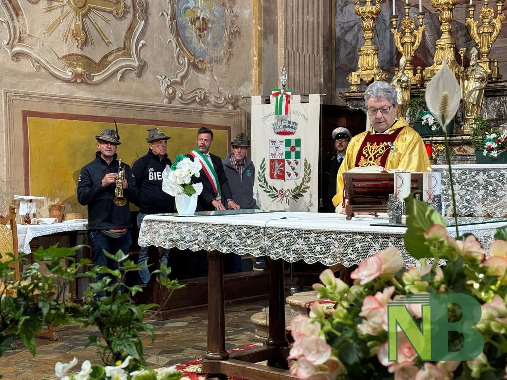 Una mattinata intensa e carica di emozione quella vissuta oggi a Lessona, dove le celebrazioni sono iniziate con l’alza bandiera alla presenza del capogruppo degli Alpini Enzo Zago e del sindaco Simone Cambié. A dare il ritmo alla giornata, la fanfara Ana Friuli Venezia Giulia, accolta con calore anche dal don di Cossato, Fulvio Dettoma, che ha salutato i musicisti prima dell'inizio della Santa Messa.