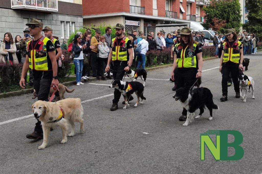 Dopo le sezioni straniere, è tempo di sfilata anche per la Protezione Civile (4° Raggruppamento) e unità alpine cinofile. Entrambi hanno percorso le vie di Biella per la 96° Adunata Nazionale.