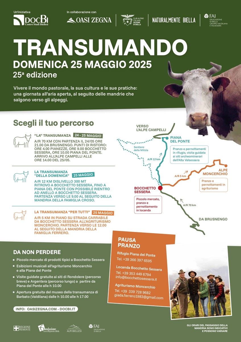 Per chi preferisce una camminata più breve, la “Transumanza della Domenica” propone un percorso di 12 km con partenza da Bocchetto Sessera alle 9.00, mentre la “Transumanza per tutti”, di soli 5 km su strada carrabile, partirà alle 12.00 da Bocchetto Sessera fino all’Agriturismo Moncerchio.