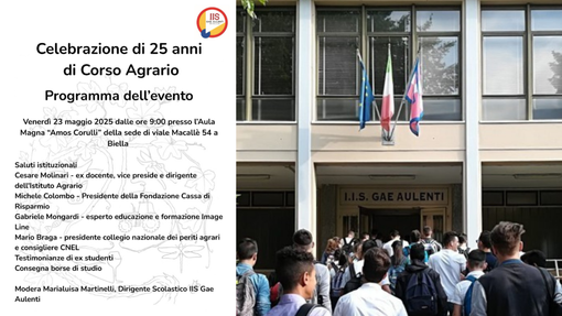 Venerdì 23 maggio 2025, l’Aula Magna “Amos Corulli” dell’IIS Gae Aulenti di Biella, in viale Macallè 54, ospiterà una celebrazione speciale: il 25° anniversario del Corso Agrario. Un traguardo importante per un indirizzo scolastico che ha formato generazioni di studenti e continua ad essere un punto di riferimento per il territorio.