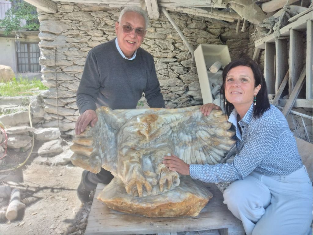 L'opera dell'artista biellese è un'aquila, simbolo dell'apostolo ed evangelista Giovanni, realizzata con un materiale tipico delle nostre zone: il quarzo dell'Elvo. “Una pietra rara e dai colori particolari, ben presente nei torrenti della nostra vallata – sottolinea Birsa – L'ispirazione dell'opera è giunta dal colore del blocco da 500 chili su cui ho lavorato: le tonalità erano accese, quasi come se fossero fiamme lambite da fuoco vivo. In quella pietra ci ho visto un'araba fenice”.