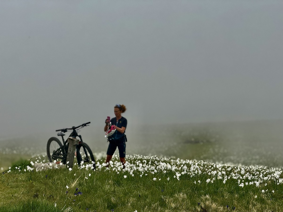 Avvicinamento classico con transito in Burcina, per proseguire nel sentiero del trenino. I colori che si incontrano sono affascinanti e la conca dei rododendri è al massimo del suo splendore. Superato il Tracciolino, come di consueto in questo periodo dell'anno, si incontrano le nuvole appoggiate ai costoni, che incorniciano i pendii fioriti: un paesaggio spettacolare!