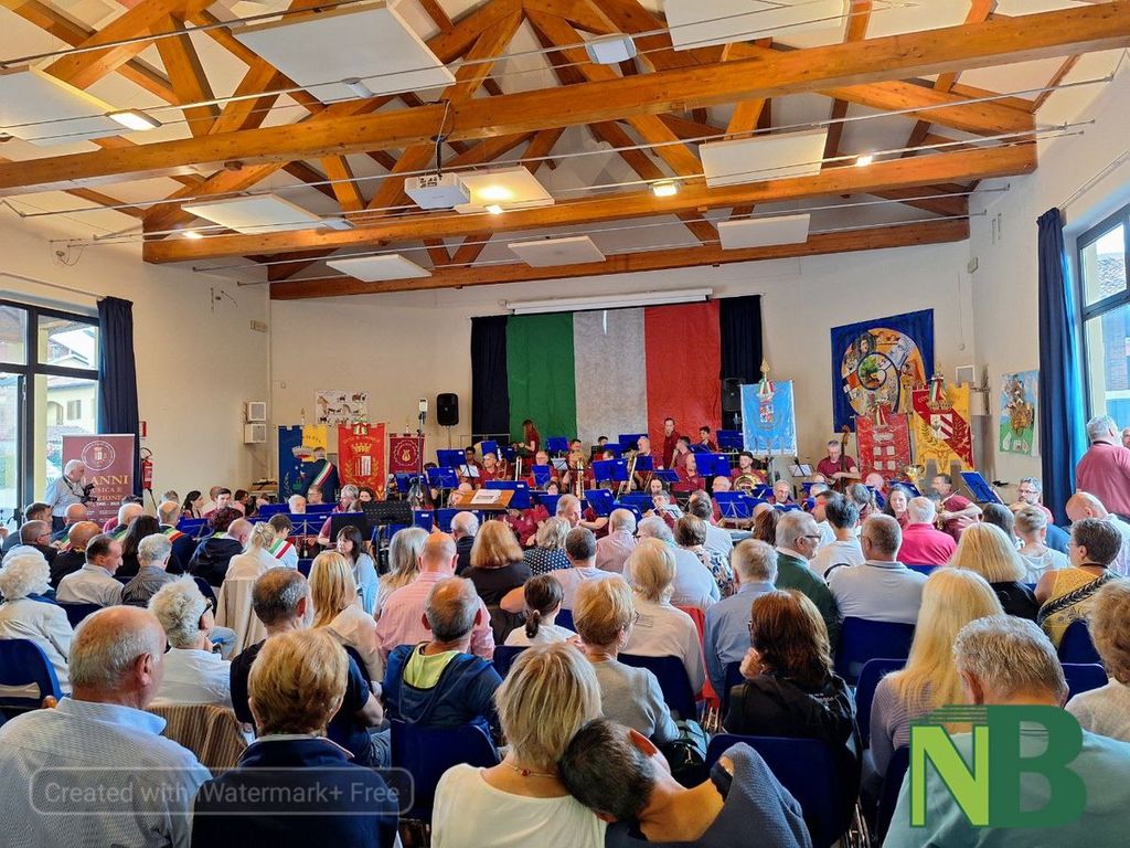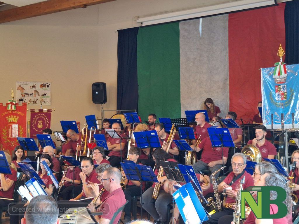 Pubblico delle grandi occasioni a Candelo, con sindaci, autorità militari, famiglie e istituzioni, per il concerto del 2 giugno a Candelo.