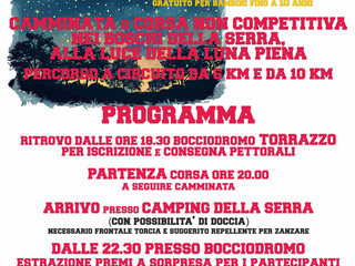 A Torrazzo sempre sabato 14 giugno torna Full Moon Walk, seconda edizione, una camminata oppure corsa non competitiva nei boschi della Serra alla luce della luna piena. Due i percorsi proposti, uno lungo 6 e un altro 10 km. L'evento è organizzato dalla Pro Loco, con ritrovo alle 18,30 al Bocciodromo del paese. L’organizzazione consiglia frontale torcia e liquido antizanzare. La corsa partirà alle 20, seguita dalla camminata. In caso di maltempo la manifestazione verrà annullata.