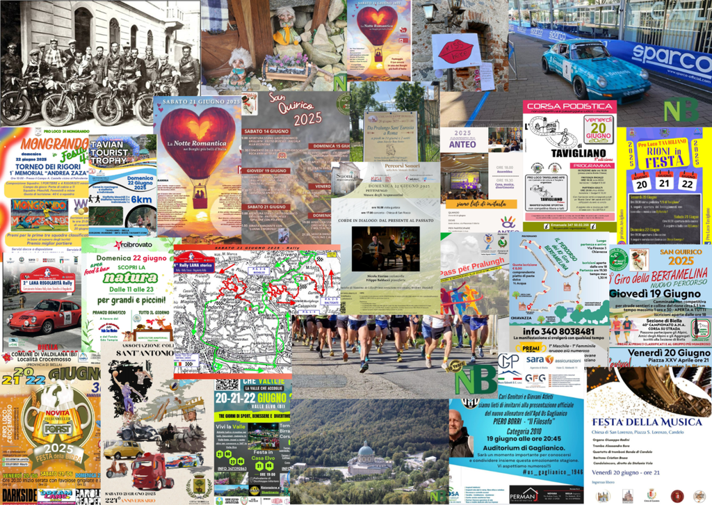 - Biella, dal 31 maggio al 14 settembre 2025 a Biella Piazzo, nei due complessi storici di Palazzo Ferrero e Palazzo Gromo Losa, si terrà la VI edizione della rassegna “Viaggio, Orizzonti, Frontiere, Generazioni”. Palazzo Ferrero Corso del Piazzo 25 | Biella Piazzo; Palazzo Gromo Losa Corso del Piazzo 22/24 |; Biella Piazzo; panificio Maurizio Sella Via Corradino Sella, 6, Biella Piano presso Fondazione Sella; Orari di apertura: sabato e domenica 10:00 19:00, Apertura straordinarie: 2 giugno, 15 agosto 2025 10:00 19:00.