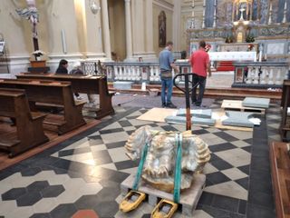 Tre mesi ci sono voluti per realizzare il nuovo leggio, ricreato in laboratorio, nel piccolo borgo di Bagneri, a Muzzano, nelle verdi vallate dell'Elvo. Nei giorni scorsi, sono iniziati gli interventi di posizionamento dell'ambone all'interno della chiesa, in attesa della cerimonia di sabato che vedrà la partecipazione dei docenti Giulio Pavignano e Claudia Ghiraldello.