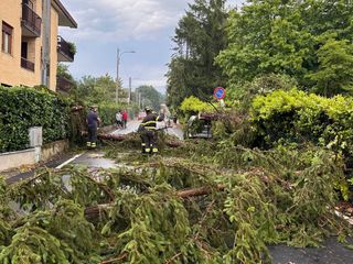 I tronchi abbattuti hanno occupato completamente la carreggiata, tranciando anche alcuni cavi elettrici aerei e provocando l’interruzione immediata del traffico. Sul posto sono intervenuti i Vigili del Fuoco, la Polizia Locale, i tecnici del Comune e gli assessori Giacomo Moscarola e Cristiano Franceschini, giunti rapidamente per un sopralluogo.