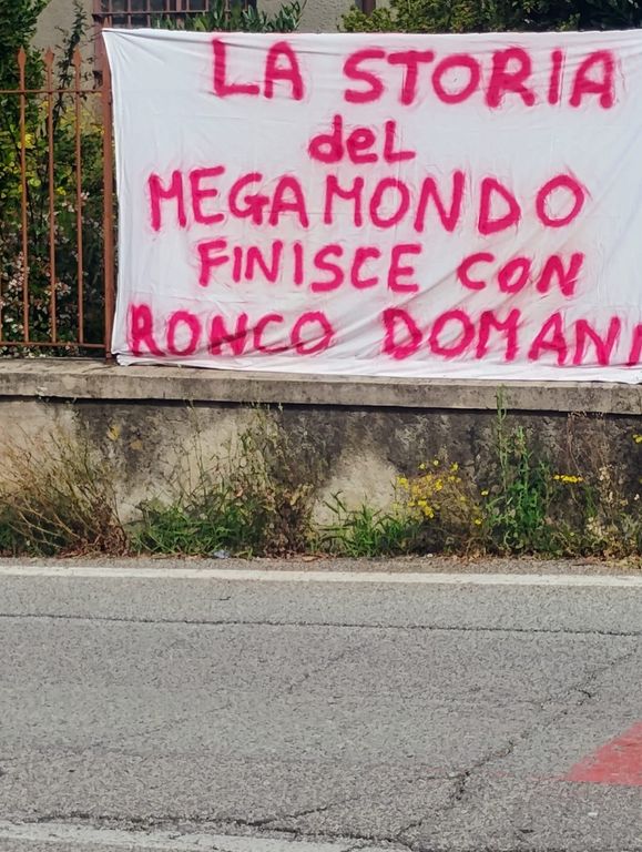 “La storia del Megamondo finisce con Ronco Domani” e “I bambini del Megamondo cercano un nuovo nido” sono le altre frasi che campeggiano davanti alla sede comunale, diventata simbolo della delusione di quindici famiglie che, tra preoccupazione e amarezza, si vedono costrette a cercare nuove alternative.