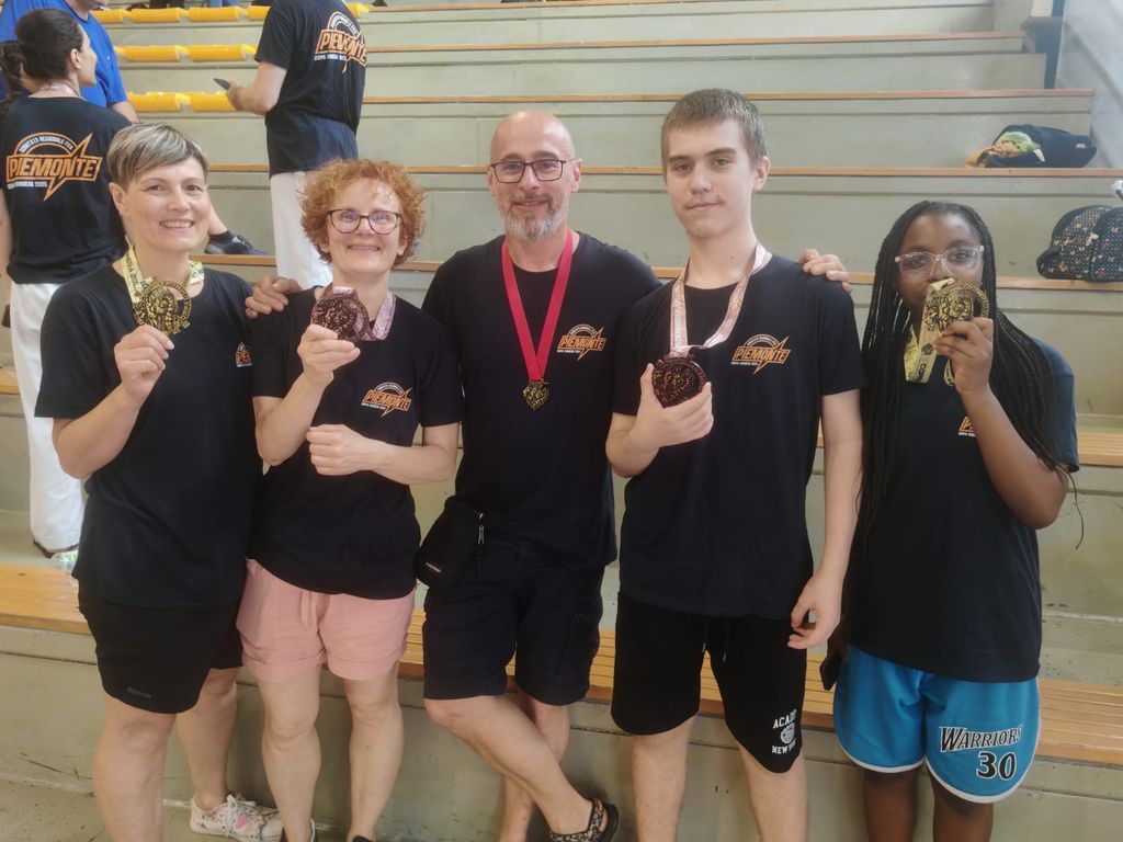 - 2 medaglie d’oro, primo posto assoluto in categoria per Francesca Tacca di Albano Vercellese, nella categoria Master cinture gialle e altrettanto primo posto per Marie Lysiane Choupa Tsigue di Biella, nella categoria Junior cinture gialle. Entrambe al loro solo secondo debutto, stanno dimostrando crescita e talento nella pratica di questa specialità.