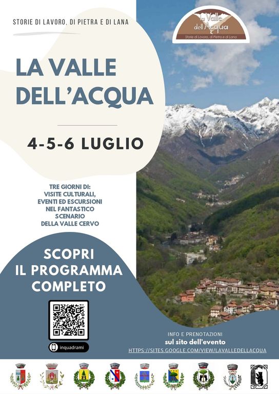 Ritorna l'evento di promozione territoriale principe della Valle Cervo e lo fa con un’edizione rinnovata: La Valle dell'Acqua, Storie di Lavoro, di Pietra e Lana è pronto ad accogliere turisti e visitatori in un intero week end, dal 4 al 6 luglio.