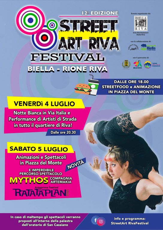 Biella si prepara ad accogliere la dodicesima edizione dello Street Art Riva Festival, in programma venerdì 4 e sabato 5 luglio 2025. Due serate ad ingresso gratuito che trasformeranno Piazza del Monte nel cuore pulsante dell’arte urbana e della festa popolare, grazie a un mix esplosivo di spettacoli dal vivo, performance multidisciplinari e proposte per tutte le età.