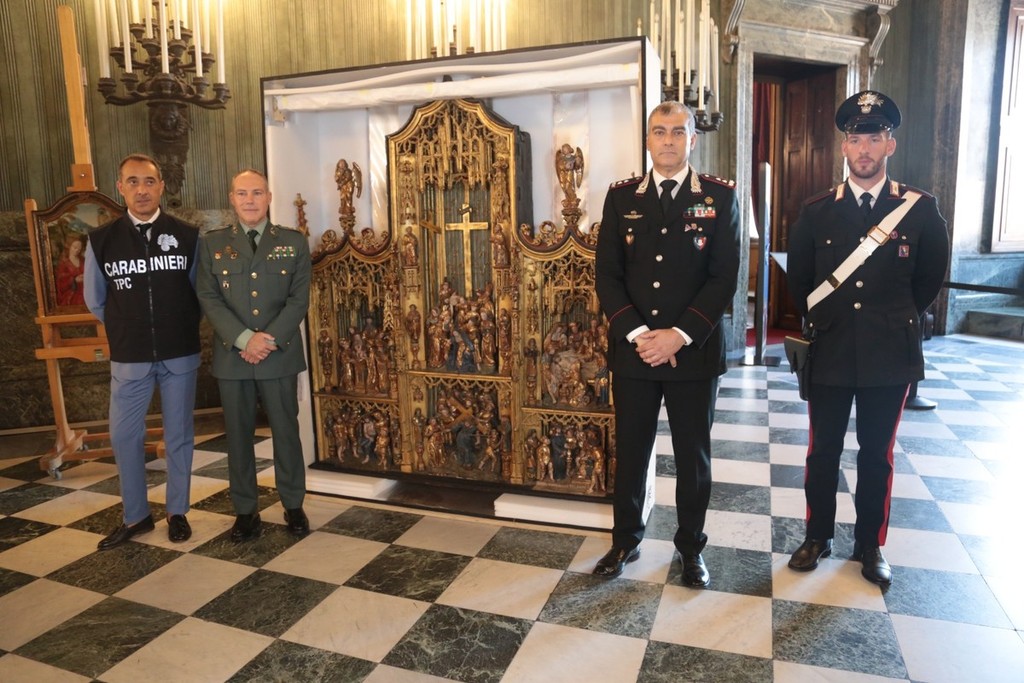 L'indagine avviata nel 2023 ha portato al recupero di un prezioso retablo trafugato dalla Spagna e nascosto in una villa a Lesa, nel Novarese. I Carabinieri del Nucleo Tutela Patrimonio Culturale di Torino, intervenuti dopo una segnalazione su beni d’arte di dubbia provenienza, hanno sequestrato l’opera con il supporto dei militari locali. Il retablo era stato esportato illegalmente dai proprietari dell’abitazione, non più in vita, nonostante un espresso divieto da parte delle autorità spagnole.
