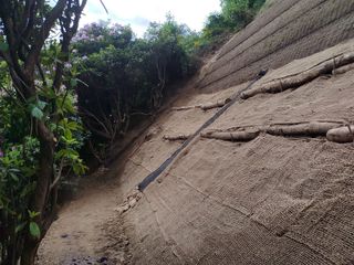 I lavori, avviati nel periodo invernale, sono stati eseguiti con tecniche di ingegneria naturalistica, in funzione delle peculiarità ambientali e paesaggistiche che caratterizzano il parco di Pollone. Il versante ripristinato è stato oggetto di più idrosemine atte a rinverdire il terreno, con risultati positivi come dimostra il manto erboso che sta già ricoprendo il versante. Inoltre, particolare attenzione è stata posta all’inserimento armonico dell’intervento nel contesto naturale, prevedendo anche soluzioni per una gestione futura sostenibile, con tecniche mirate a evitare lo spreco idrico. A tal fine sarà posizionata una vasca di raccolta acqua.