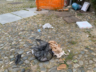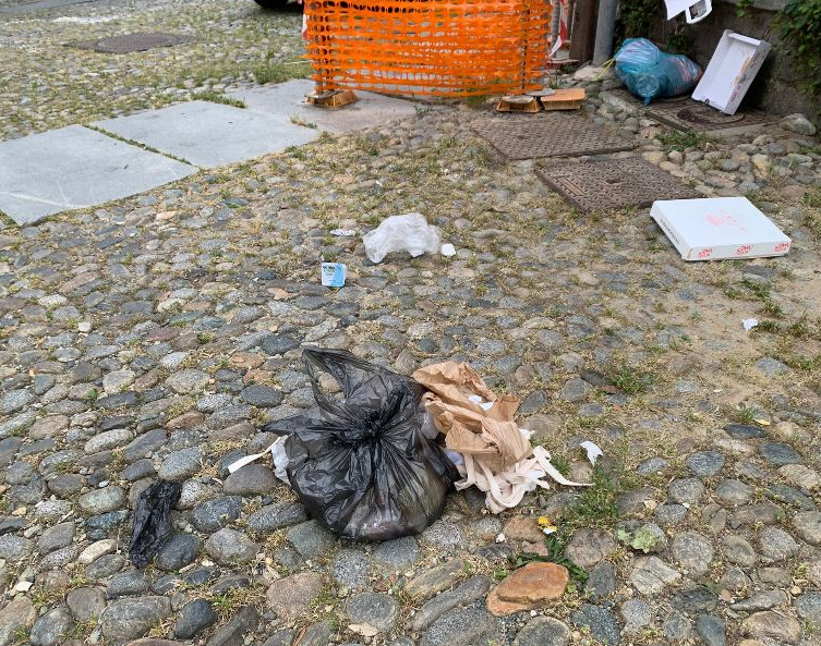 “Segnalo questo problema, ormai costante quotidiano da tempo infinito. Ho già informato Seab e fatto molteplici segnalazioni al Comune ma nulla: la situazione è irrisolta e vergognosa. Si tratta, al Piazzo, del pattume che viene depositato con sacchetti, buste ed ogni genere di immondizia non differenziata che viene mollata impunita senza autorizzazione per terra e sul muretto che costeggia palazzo Ferrero e i giardini vicini.