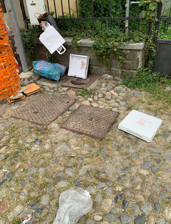 Questa immondizia viene spesso aperta da animali nella notte e sbrandellata in ogni dove. Seab si è resa disponibile ed ogni mattina vengono appositamente a pulire raccogliendo i rifiuti che questi soggetti depositano senza pagare nei loro cassonetti che dovrebbero esporre fuori dalle loro abitazioni nei giorni di ritiro come le persone corrette e civili. Io personalmente pulisco ogni giorno con guanto e sacco per la mia etica di civiltà e decoro. Ma il problema non si risolve se il comune di Biella non interviene con sanzioni, telecamere e cartelli di divieto di deposito rifiuti”.