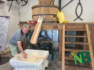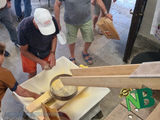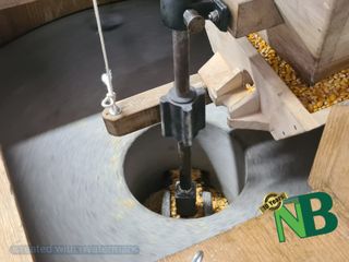 La paratia della lanca che raccoglie l'acqua dell'Ostola è stata aperta e convogliata sulle pale del mulino che, girando, ha messo in moto la macina, tenuta d'occhio dal mugnaio, ed ha prodotto diversi chili di farina gialla imbustati e pronti per arrivare nelle cucine.