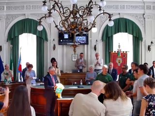 La cerimonia si è conclusa con la consegna di una maglia della società al primo cittadino e del gagliardetto.