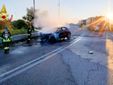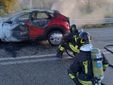 Nell' impatto sono state coinvolte 2 autovetture in uno scontro frontale, una delle quali, ibrida ha preso fuoco nello scontro.