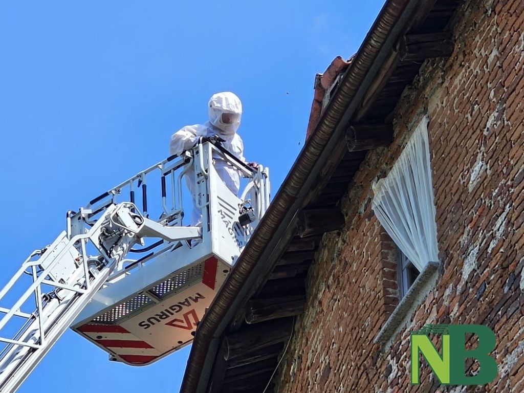 Come tutte le estati, sono numerose le segnalazioni di nidi di api, vespe e calabroni presenti nelle aree esterne delle abitazioni o all'interno di canne fumarie. Anche oggi sono stati diversi gli interventi dei Vigili del Fuoco, come al Castello di Valdengo dove una squadra ha bonificato l'interno di un camino con l'ausilio dell'autoscala.