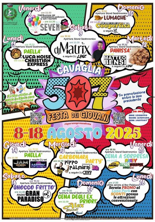 Tutto pronto per la 507ª edizione della storica Festa dei Giovani di Cavaglià, uno degli appuntamenti estivi più attesi della zona. Dal 8 al 18 agosto 2025, il paese si animerà con dieci serate consecutive all’insegna della musica, del divertimento e di tante novità pensate per coinvolgere giovani e famiglie.