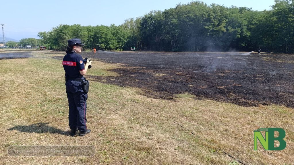 Momenti di apprensione nella tarda mattinata di oggi 12 agosto nella zona del Maghettone, a Mongrando, per un incendio che ha interessato un prato situato nei pressi di alcuni pannelli fotovoltaici.