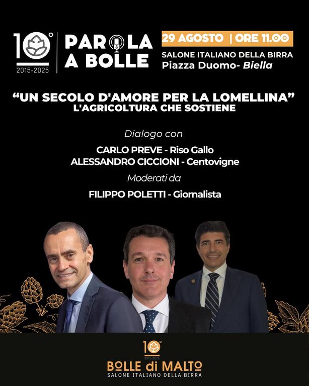 «Il bello del “food” e del “beverage” italiano, per usare una terminologia diffusa anche sui social media, sono le storie delle famiglie e delle loro aziende che fanno il cibo, l’aceto o il vino – spiega Poletti, che dal 2017, presenta tutti i giorni storie positive di lavoro su LinkedIn. “Pensiamo a Moratti, che da 35 anni porta sulle nostre tavole il gusto italiano delle chips prodotte a Castiglione delle Stiviere in provincia di Mantova. Con Preve ci immergeremo nella cultura del riso, scoprendo, ad esempio, perché dobbiamo dire grazie al proprietario terriero e politico Camillo Benso di Cavour e cosa unisce dal 1856 il riso e il gallo. A proposito di tradizione, a “Parola a Bolle” ci sarà la famiglia Ponti, che da nove generazioni, dal 1787, produce l’aceto: con Lara sveleremo, in particolare, il rapporto tra l’aceto e la birra, guidando il pubblico nella degustazione. Infine, grazie alla presenza di Massera, Ciccioni e Vietti, andremo alla scoperta del perché i torcetti della pasticceria Massera, in attività dal 1920, devono molto al lievito di birra, cosa lega il Nebbiolo dell’Alto Piemonte al territorio pavese, e l’amore profondo per la natura di Teresio Rossello, fondatore di Lauretana nel 1964».