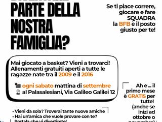La società, interamente dedicata al basket femminile, rinnova l’impegno per le più giovani con giornate di prova gratuite. Ogni sabato mattina di settembre, presso la palestra Palasalesiani di Via Galileo Galilei 12 a Biella, le ragazze nate tra il 2009 e il 2016 potranno avvicinarsi gratuitamente alla pallacanestro. Il primo mese è gratis per tutte, anche per chi inizierà ad ottobre o novembre.