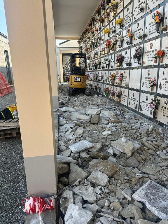 Sono iniziati i lavori di sostituzione della pavimentazione della campata Sud dei loculi del cimitero comunale di Ponderano.