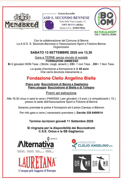 Sabato pomeriggio, invece, sarà la giornata dedicata alla gara di bocce, una gara con 40 formazioni, il cui ricavato sarà devoluto alla Fondazione Clelio Angelino Biella.