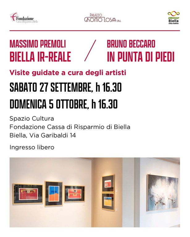 Due appuntamenti speciali arricchiscono la mostra “Massimo Premoli – Biella ir-reale / Bruno Beccaro – In punta di piedi”, inaugurata lo scorso 5 settembre a Spazio Cultura della Fondazione Cassa di Risparmio di Biella.