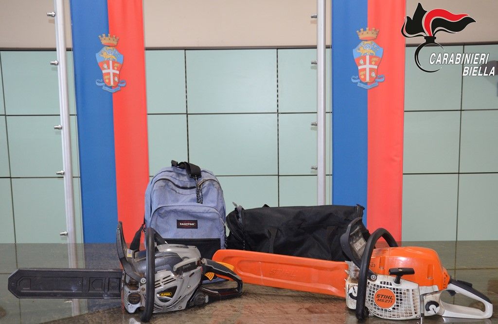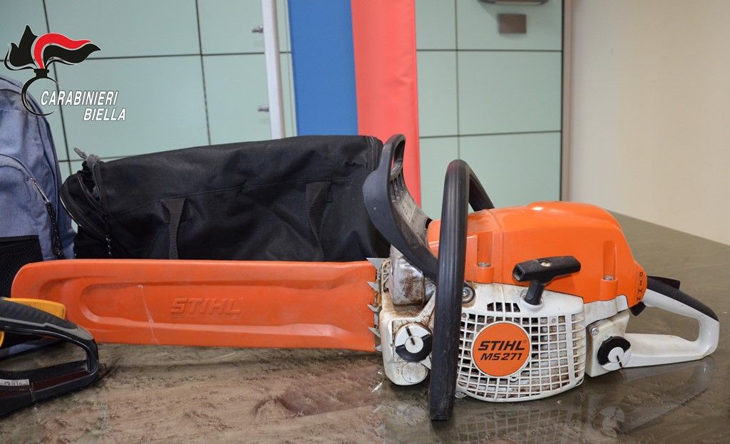 A ciò si aggiunge una motosega completa di copri catena marca alpina di colore nero e grigio modello acs 538, posta all’interno di uno zaino di colore nero marca kaytar. Entrambe si trovano presso la Stazione Carabinieri di biella per l’eventuale restituzione.