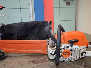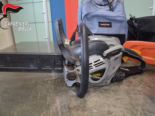 A ciò si aggiunge una motosega completa di copri catena marca alpina di colore nero e grigio modello acs 538, posta all’interno di uno zaino di colore nero marca kaytar. Entrambe si trovano presso la Stazione Carabinieri di biella per l’eventuale restituzione.