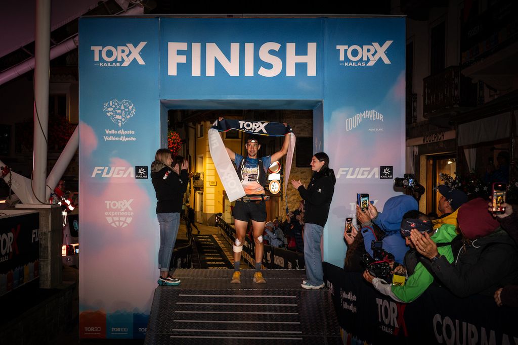 Da lì in poi, comincia il suo viaggio in solitaria contro il tempo. Il vantaggio “virtuale” sul tempo di Collé arriva anche a superare l’ora e trenta minuti, ma poi lo sforzo profuso presenta il suo conto sotto forma di forte dolore al tendine d’Achille. Alla base vita di Ollomont si fa trattare dai MassaggiaTOR e riparte dopo mezz’ora. Da lì in poi non si fermerà più fino al traguardo, stringendo i denti. Ora per lui è arrivato il momento di godersi una vittoria e un tempo da sogno, anche se in questi casi è sempre difficile parlare di record, visto il percorso cambiato rispetto al passato con il passaggio ai Rifugi Bonatti e Bertone.
