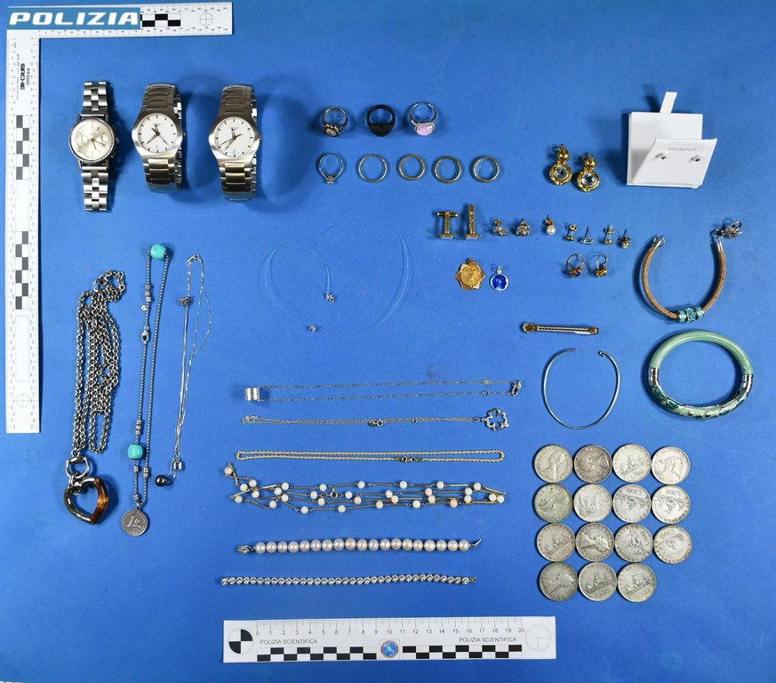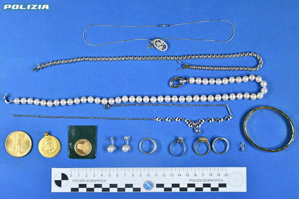 Sottoposte a perquisizione personale, venivano trovate in possesso di due grossi cacciaviti e due lastre di plastica rudimentali, grazie ai quali probabilmente erano entrate all’interno dell’abitazione, occultati nei loro pantaloni e nei calzini oltrechè di 4 collane in oro e perle, 1 braccialetto, 2 anelli, 1 orecchini con perle che nascondevano nelle tasche dei pantaloni. Nell’auto in uso alle due donne venivano inoltre trovati altri strumenti da scasso.