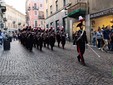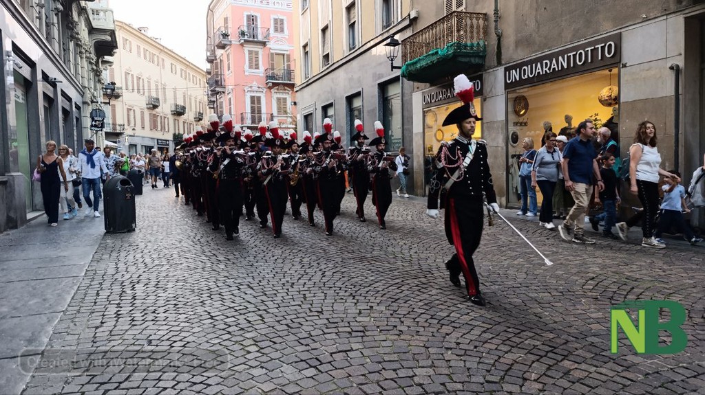 Le celebrazioni sono iniziate nel tardo pomeriggio, quando la Fanfara ha sfilato per le vie del centro insieme ai Carabinieri in alta uniforme. Partiti da piazza del Battistero, i militari hanno percorso tutta via Italia fino a piazza Vittorio Veneto, accolti da un folto pubblico che ha riempito le strade e accompagnato la parata. Giunti in piazza, i musicisti hanno eseguito due brani, regalando alla città un primo momento di spettacolo.