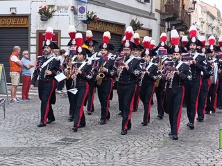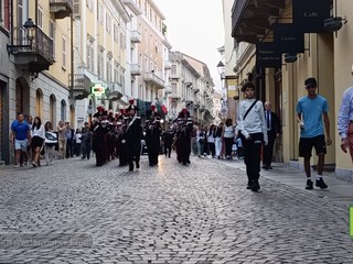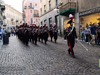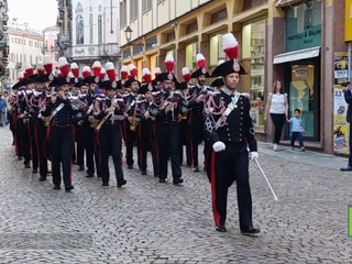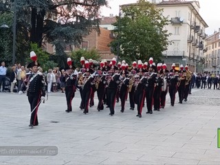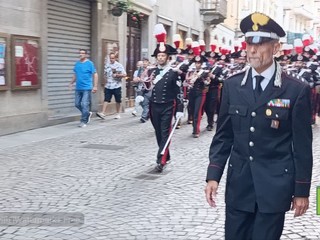 Le celebrazioni sono iniziate nel tardo pomeriggio, quando la Fanfara ha sfilato per le vie del centro insieme ai Carabinieri in alta uniforme. Partiti da piazza del Battistero, i militari hanno percorso tutta via Italia fino a piazza Vittorio Veneto, accolti da un folto pubblico che ha riempito le strade e accompagnato la parata. Giunti in piazza, i musicisti hanno eseguito due brani, regalando alla città un primo momento di spettacolo.