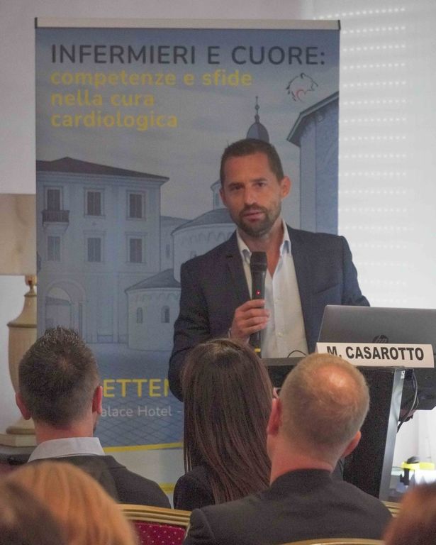 Nella giornata di sabato 13 settembre si è tenuta una sessione formativa dedicata agli Infermieri, dal titolo "Infermieri e cuore: competenze e sfide nella cura cardiologica". In apertura è intervenuto il Dott. Marco Casarotto, Responsabile scientifico della sezione del Convegno dedicata agli Infermieri e Coordinatore Infermieristico della S.C. Cardiologia - UTIC dell'ASL BI. Ai saluti istituzionali hanno preso parte anche Andrea Rognoni, Direttore S.C. Cardiologia - UTIC ASL BI e Fabiano Zanchi, Direttore f.f. S.C. Direzione delle Professioni Sanitarie ASL BI, che hanno sottolineato l'importanza di un focus strutturato sulle competenze infermieristiche e sulle nuove sfide nell'assistenza cardiologica.