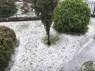 Un violento acquazzone si è abbattuto su tutto il Biellese. Piogge intense e, in alcuni punti, grandine di piccole dimensioni che, in breve tempo, si è accumulata sulla strada e nelle aree verdi.