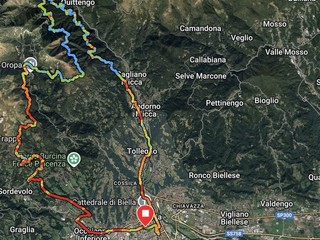 La partenza è da Sagliano Micca, dove le mulattiere per Oneglie mettono subito alla prova: tratti ripidi e gradini che richiedono fiato ed equilibrio. Si prosegue poi verso Riabella, immersi in un sottobosco fresco e accogliente, fino all’Oratorio di San Paolo, raggiungibile solo dopo un tratto di spinta in salita di circa 70 metri di dislivello.