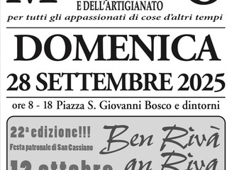 Domenica 28 settembre 2025 le vie e le piazze dello storico rione Riva di Biella torneranno ad animarsi con il Mercatino dell’Antiquariato minore e dell’Artigianato, giunto alla sua 110ª edizione.