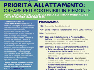 Il 3 ottobre, invece, la Regione Piemonte ha organizzato per gli operatori un evento al Museo Regionale di Scienze Naturali dove si confronteranno professionisti sanitari, operatori di musei, biblioteche, servizi educativi, centri per le famiglie, parchi naturali, agricoltura sociale sul tema “Creare reti sostenibili in Piemonte”, con l’obiettivo di ripensare il sostegno all’allattamento in chiave sostenibile dal punto di vista ambientale, ma anche sociale e organizzativo.