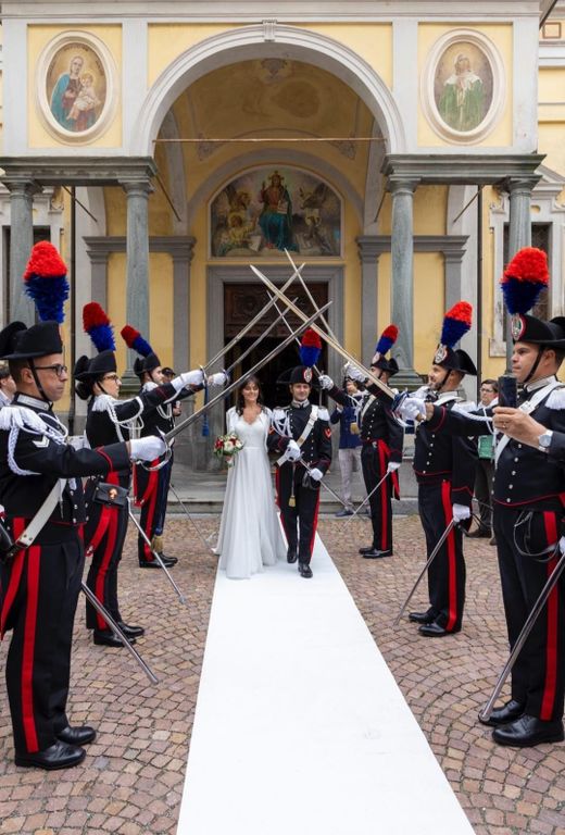 A rendere il momento ancor più solenne e toccante gli onori tributati alla coppia all'uscita dalla chiesa. Un picchetto composto da donne e uomini dell'Arma ha reso omaggio agli sposi, schierandosi a festa e sfoggiando anch'esso la splendida e rara grande uniforme storica.