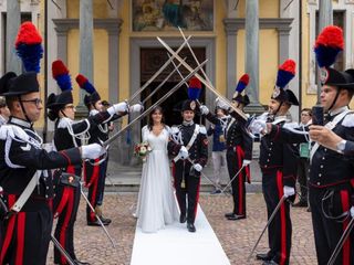 A rendere il momento ancor più solenne e toccante gli onori tributati alla coppia all'uscita dalla chiesa. Un picchetto composto da donne e uomini dell'Arma ha reso omaggio agli sposi, schierandosi a festa e sfoggiando anch'esso la splendida e rara grande uniforme storica.