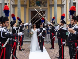 A rendere il momento ancor più solenne e toccante gli onori tributati alla coppia all'uscita dalla chiesa. Un picchetto composto da donne e uomini dell'Arma ha reso omaggio agli sposi, schierandosi a festa e sfoggiando anch'esso la splendida e rara grande uniforme storica.