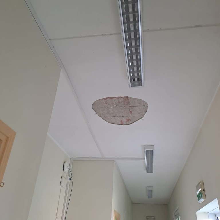 Nella giornata di ieri giovedì 3 ottobre, dalla volta di un corridoio del primo piano della scuola primaria si sono staccati improvvisamente alcuni calcinacci. Fortunatamente in quel momento non stava transitando nessuno.