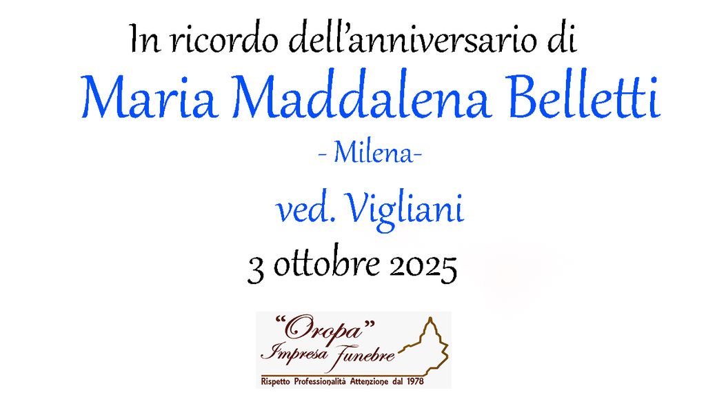 Maria Maddalena Belletti (Milena), ved Vigliani - Anniversario