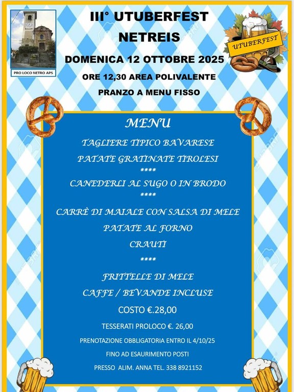 Un weekend pensato per tutte le età, dove la tradizione bavarese incontra il calore dell’ospitalità piemontese. La Pro Loco di Netro vi aspetta numerosi, per brindare insieme all’autunno in allegria!