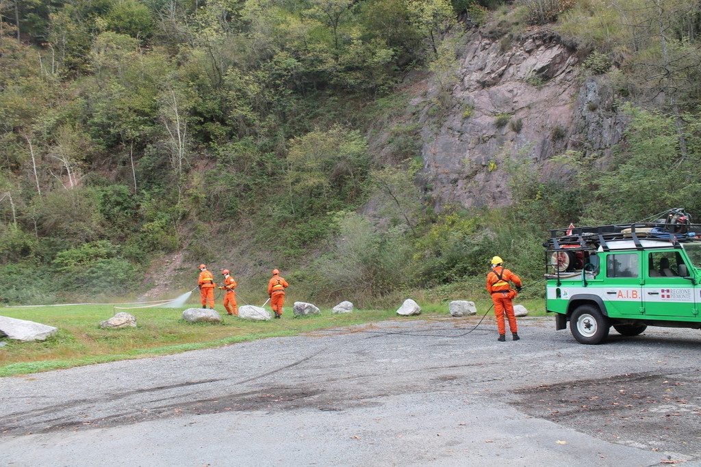 Nella prima fase dell’esercitazione è partito un modulo antincendio con 4-5 volontari, incaricati di procedere all’estinzione di un incendio simulato in condizioni di sicurezza. Nella seconda fase, su richiesta del CoAIB già presente sul posto, è intervenuto un secondo modulo insieme a un mezzo L200 con carrello dotato di vasca antincendio.